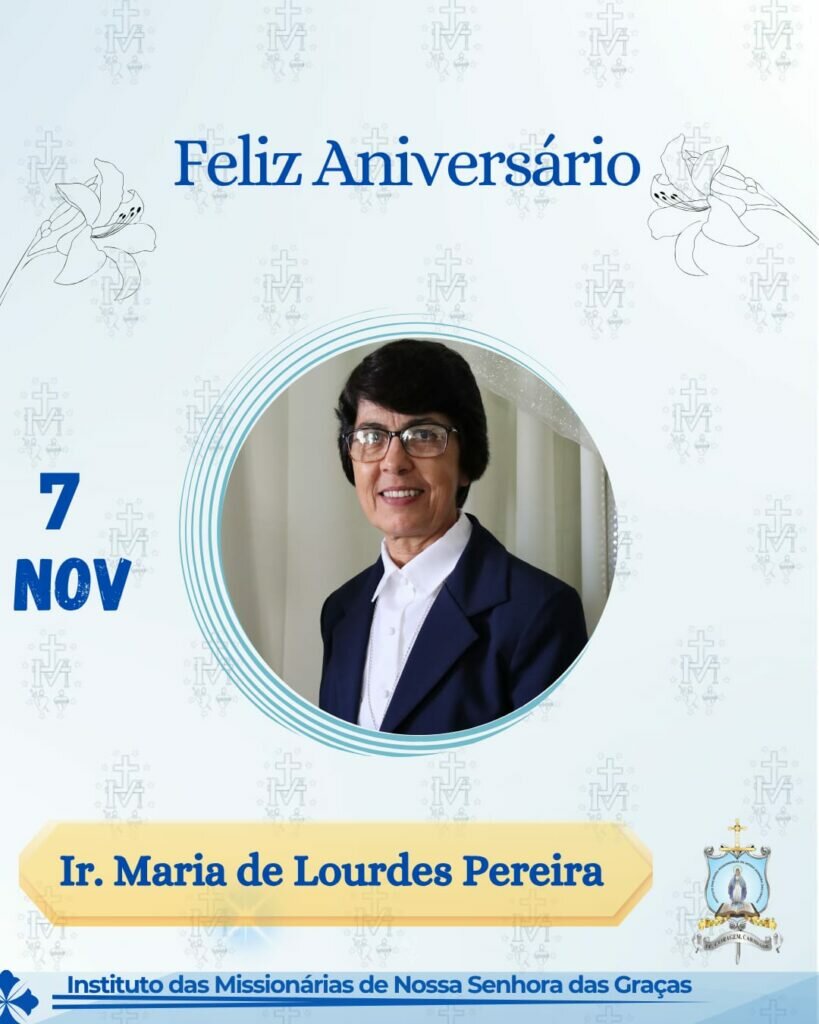 Hoje é dia de celebrar o dom da vida da Irmã Maria de Lourdes Pereira do Instituto das Missionárias de Nossa Senhora das Graças.