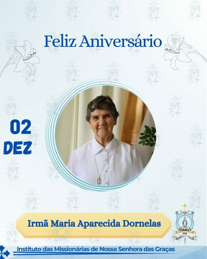 Hoje é dia de celebrar o dom da vida da Irmã Maria Aparecida Dornelas do Instituto das Missionárias de Nossa Senhora das Graças.